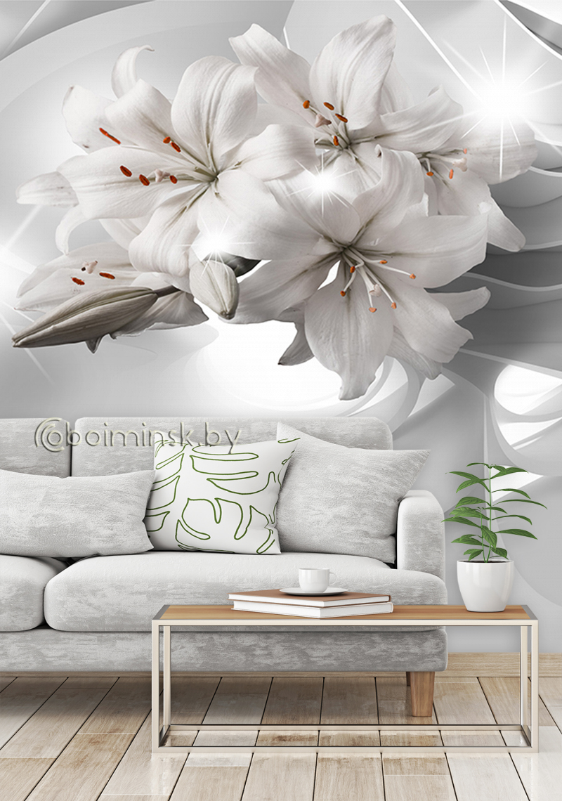 Фотообои 3Д лилии в  интерьере