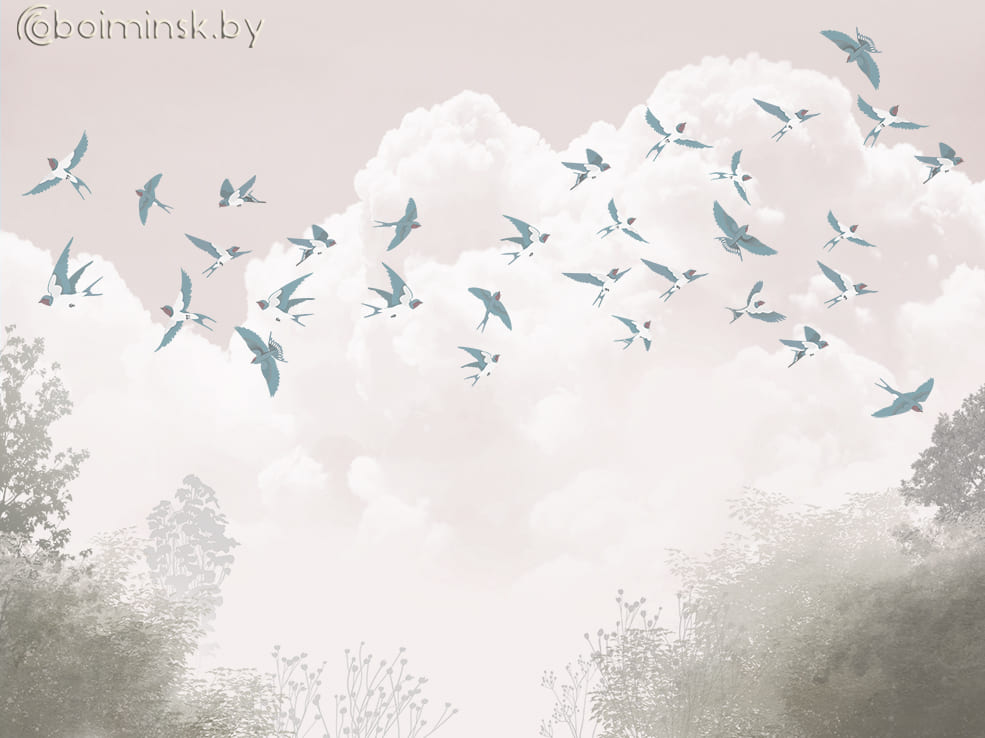 Фотообои De-Art Ласточки фрескаФотообои De-Art Ласточки фреска розовые облака
