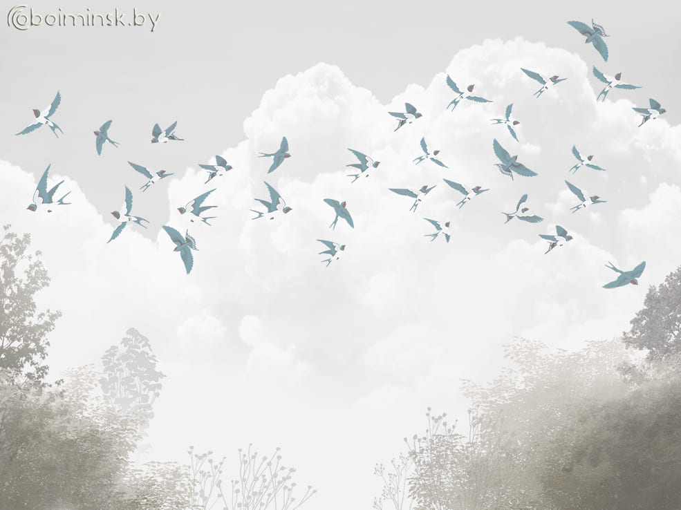 Фотообои De-Art Ласточки фреска в интерьере гостиной